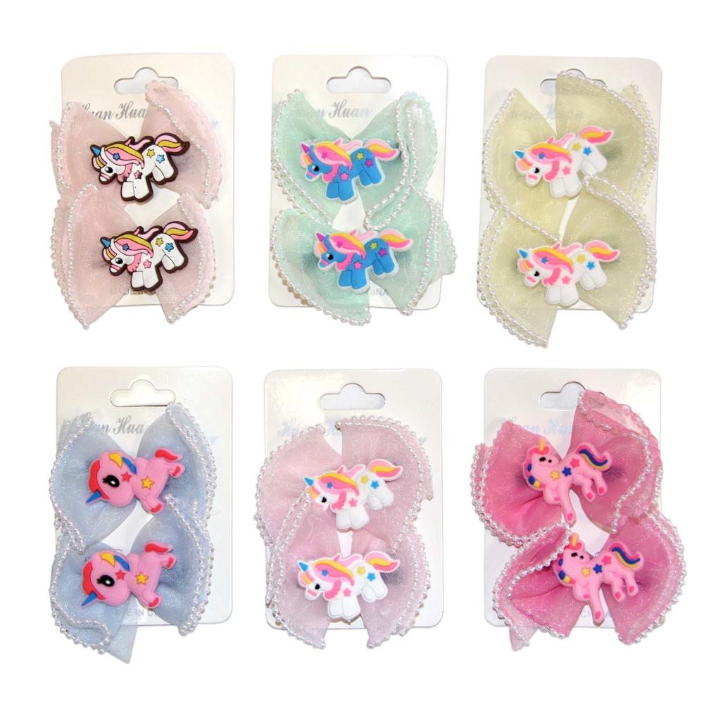 Набор зажимов для волос 2в1 6см Бант, единорог Р3144-31